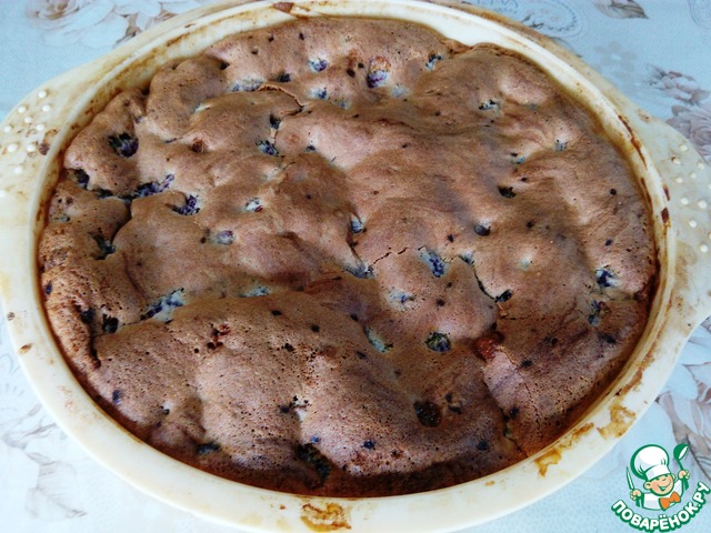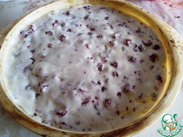Перекладываем тесто с ягодами в силиконовую форму, смазанную растительным маслом. Лопаточкой разравниваем тесто по форме.