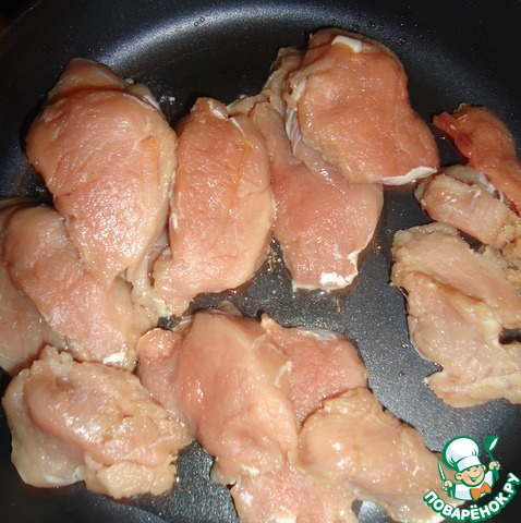 Мясо помыть, нарезать на средние кусочки и в другую сковороду поставить жарить мясо.