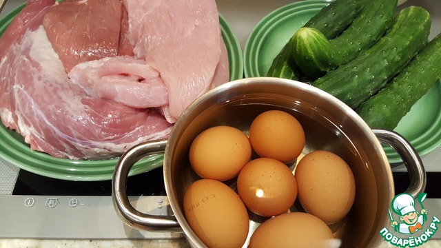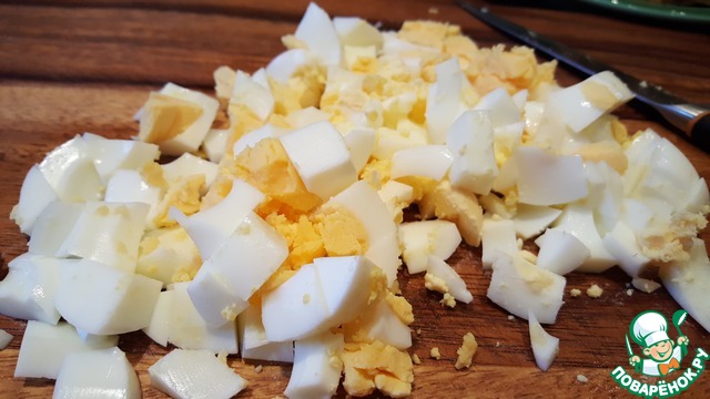 Какое бы ни было мясо, его ни рубить, ни провертывать на машинке нельзя, а необходимо нарезать его мелкими кубиками, так же нарезать и огурцы и яйца.