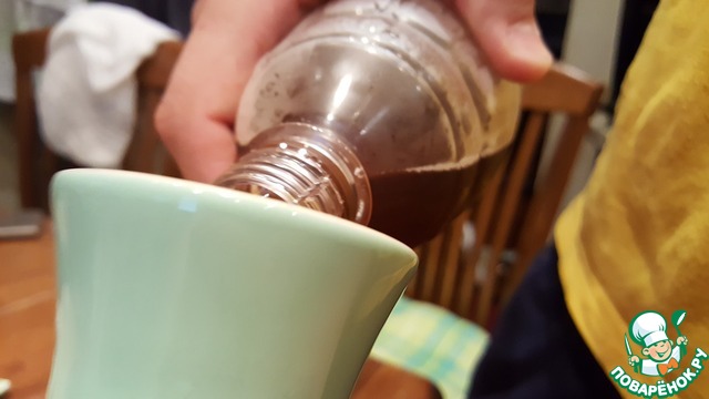 Квас "Бородинский" из серии "Семейный секрет" от ТМ Очаково не слишком пенится при добавлении его в тарелку, но я решила следовать рецепту и заранее перелила часть кваса в кувшин (точнее поручила это мужу).
