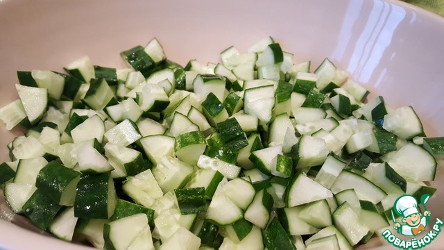 Я нарезала не очень мелким кубиком, т. к. моя семья предпочитает среднюю нарезку. -