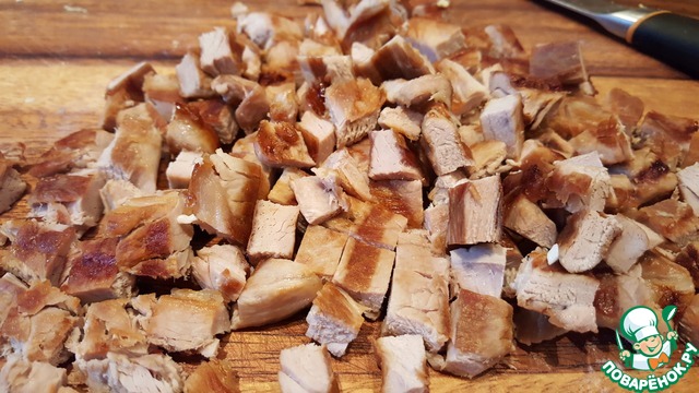 Я взяла карпаччо из мяса индейки. Нарезать кубиком. -