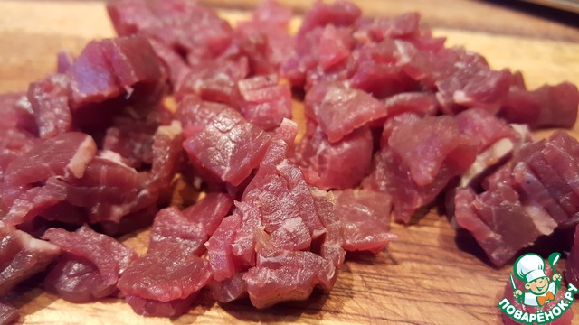 Общий вес готового мяса должен составлять 1ф = 400 г.