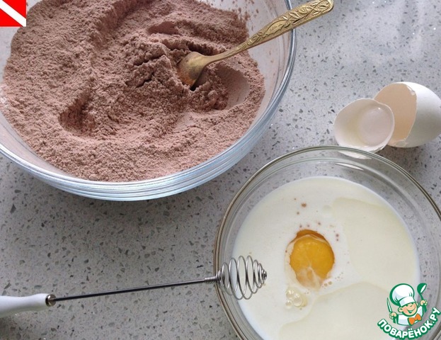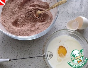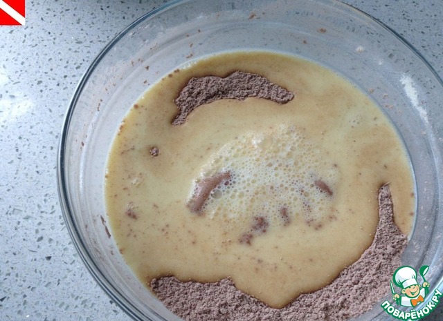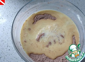 А затем все вместе. Взбивала минуты 2-3. Постепенно добавила кипяток, продолжая взбивать. Тесто получается льющимся, немного жидковатым. По желанию можно добавить ягодки типа жимолости, голубики, смородины.