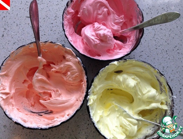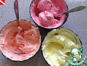Крем разделила на три части и окрасила в желтый, оранжевый и красный цвет (красители специально везла).