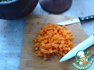 Морковь сварилась, чистим её и режем мелким кубиком.
