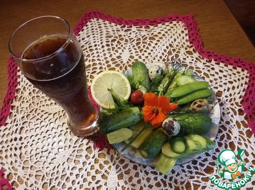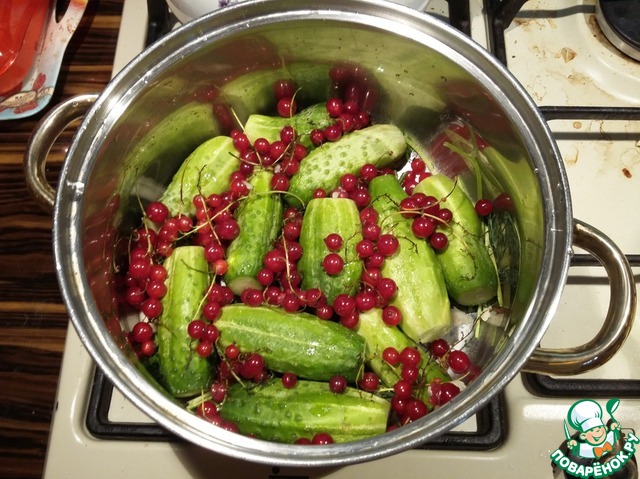 Рецепт «Малосольные огурцы с красной смородиной в квасе»: