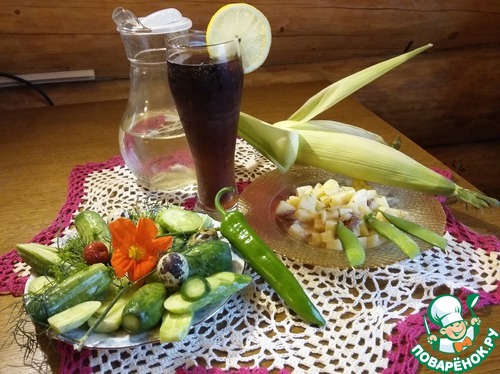 Картошечку съели, а квас и огурчики остались. Хватит еще не на один день.