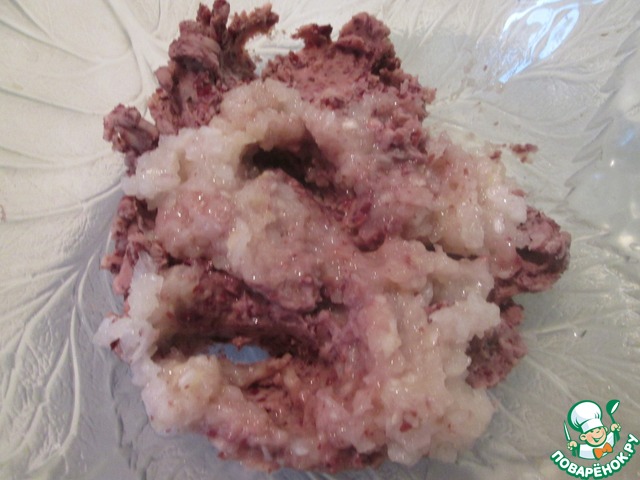 Добавить цукини, панировочные сухари, соль и перец в фасолево-луковое пюре. Все ингредиенты тщательно перемешать.