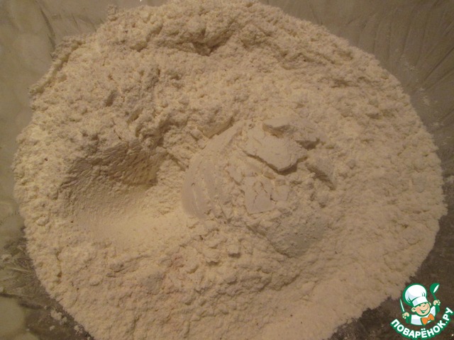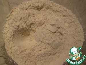 Просеянную муку смешать с сахаром, разрыхлителем, солью и пряностями.