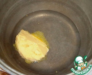 В воду кладем сливочное масло и ставим на плиту. -