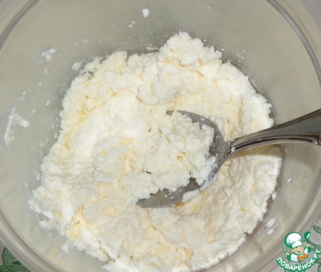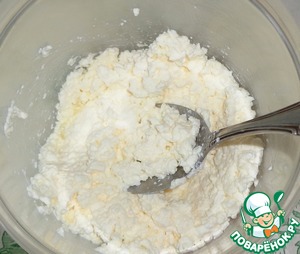 Творог растереть ложкой или взбить миксером.
