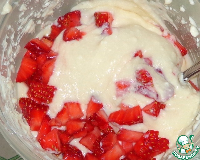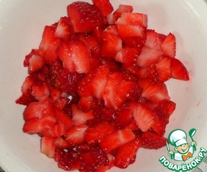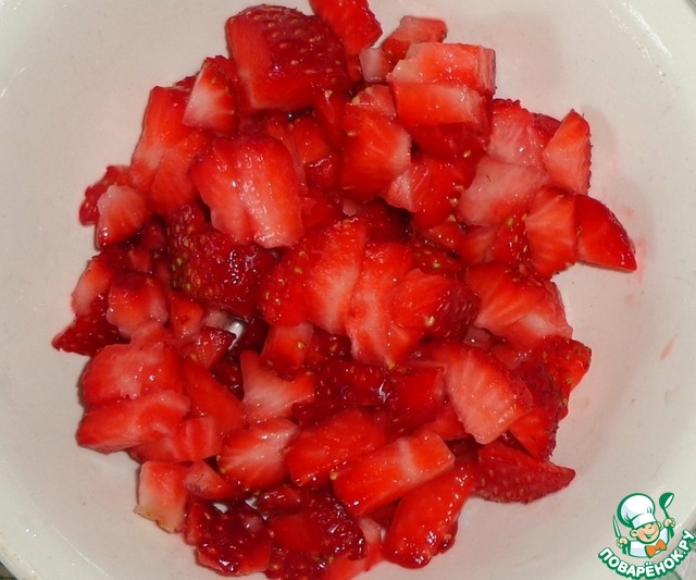 Промыть водой клубнику и мелко порезать.