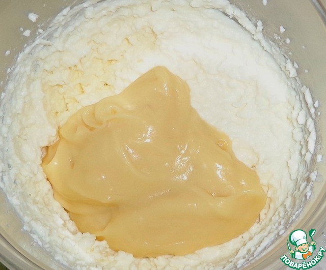 Вспомогательную массу добавить в творог и взбить.