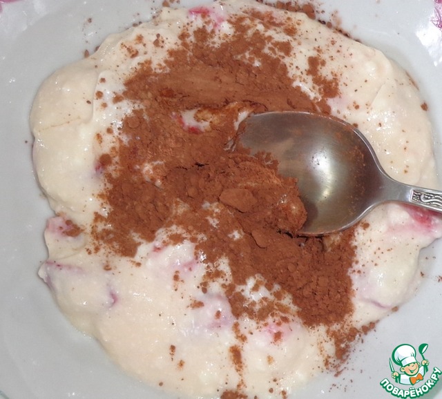 Взять 1/3 часть крема и добавить в него какао-порошок.
