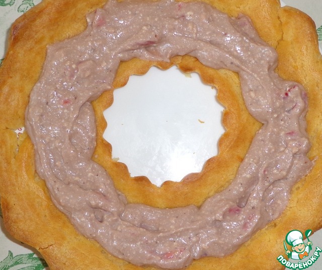 Ставим большую часть коржа на шоколадный крем.