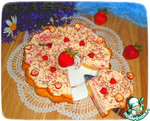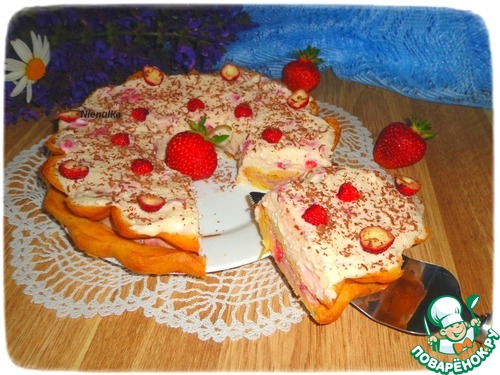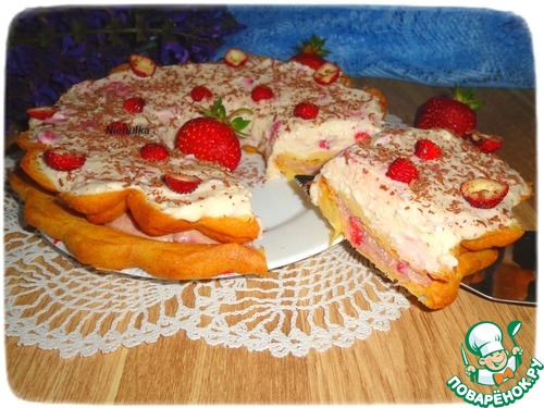 Хочу предложить вашему вниманию торт, приготовленный из заварного теста с творожно-клубничной начинкой.