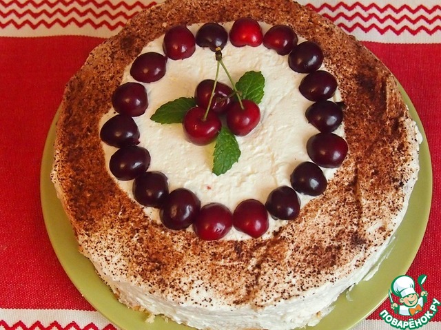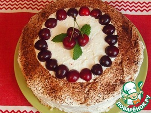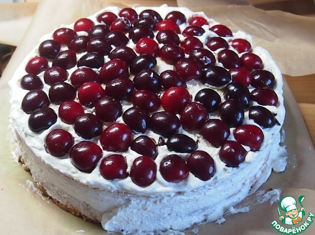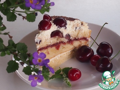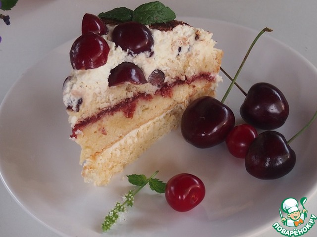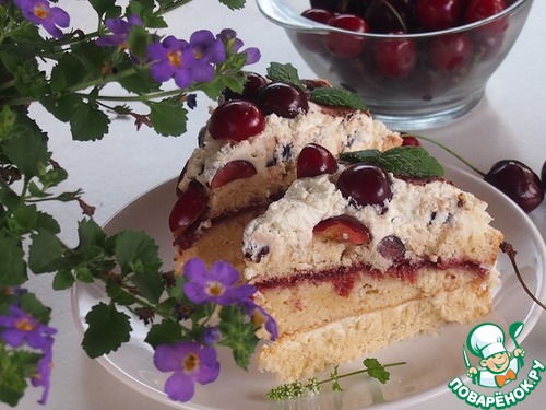 Дорогие поварята, предлагаю испечь нетрудоемкий, но очень вкусный торт на основе нежнейшего бисквита, с кремом из взбитых сливок с маскарпоне и черешней. Этот тортик я пекла на День рождения своего сына, все присутствующие на этом семейном торжестве остались очень довольны!