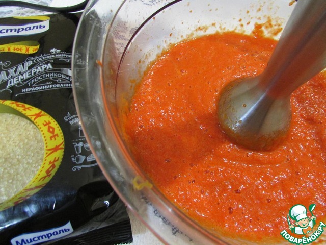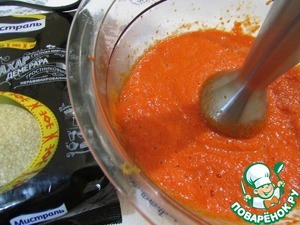 Подготовленный перчик измельчить погружным блендером до однородности.