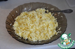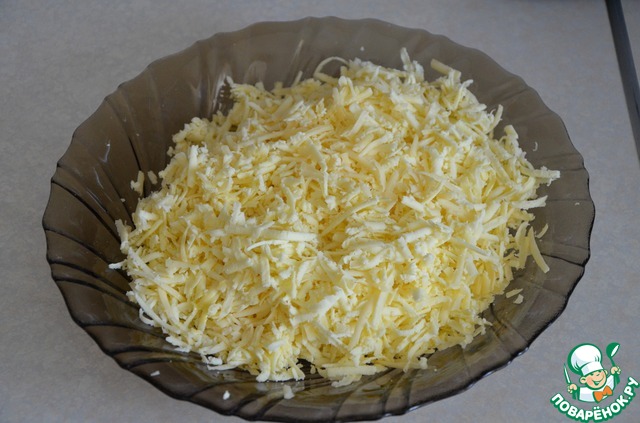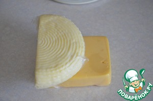 Все ингредиенты для теста помещаем в хлебопечку и включаем режим "пицца" (45 мин.). В это время готовим начинку. Берём два мягких сыра, можно и три, кому как нравится. Пропорция тоже по вкусу.