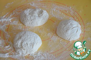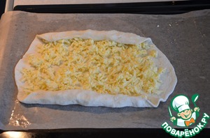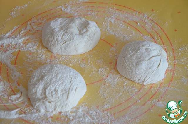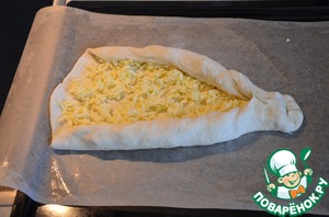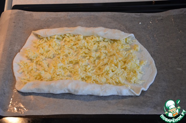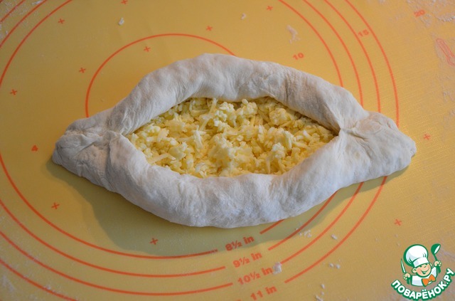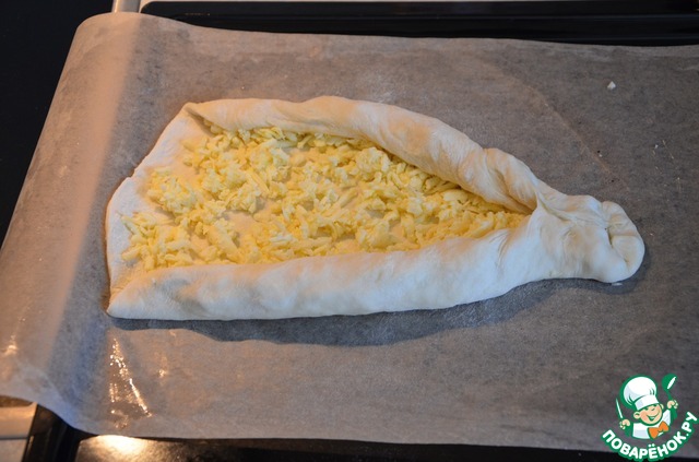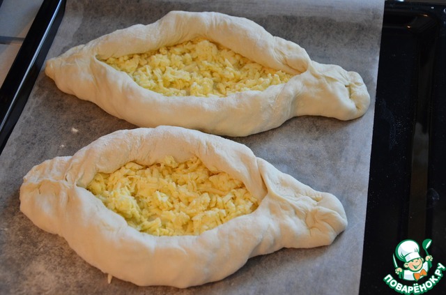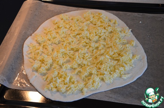 На сайте много вариантов приготовления этого блюда. Предлагаю тот, которым сами пользуемся, на пробу. Не претендую на оригинальность рецепта, но надеюсь, что понравится. Делается быстро, без особых "заморочек", готовим в выходные на завтрак. Тесто делаем в хлебопечке по одному из вариантов дрожжевого теста для пиццы. Для начинки используем смесь двух каких-нибудь мягких сыров (сулугуни, адыгейский, чечил, ламбер и т. п.). Предлагаемый рецепт (тесто из 300 г. муки) рассчитан на 3 порции. Если делать тесто из 400 г. муки, сыра натереть побольше, то получится 4 порции.