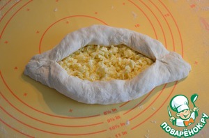 [+5]Начинка у меня состоит из творога, сыра и брынзы. Яйцо не добавляла, так как семья предпочитает такие хачапури без яйца.