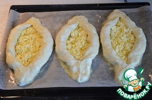 Размещаем получившиеся лодочки на противень, застеленный бумагой для выпекания и смазываем лизоном