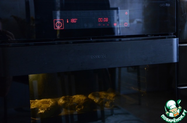 Помещаем это в предварительно разогретый духовой шкаф. Мы выпекаем в режиме конвекции при 180 градусах. Если использовать классический нагрев, то надо нагреть до 200 градусов.