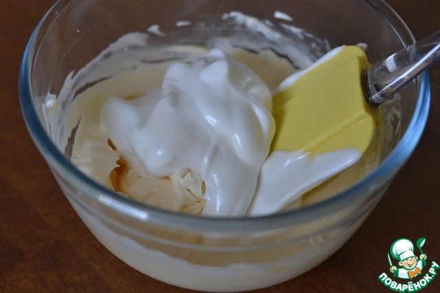 Масло комнатной температуры взбить миксером, добавить 2/3 сахара.