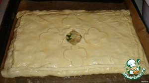 Края скрепите и обмажьте яйцом, сверху оформите пирог узором.