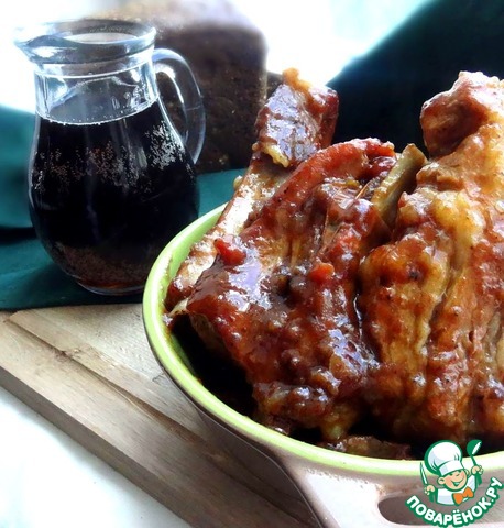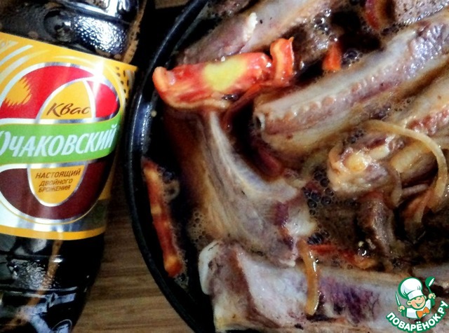 Рецепт «Ребрышки в квасе с ржаным хлебом»: