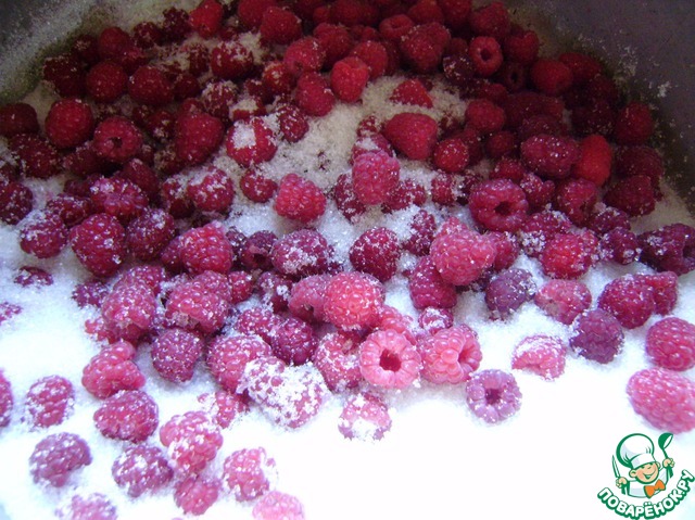 Малину засыпаем сахаром. И оставляем чтоб пустила сок.
