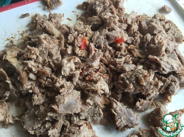 - Мясо (Можно использовать любое готовое мясо, я предлагаю запечь цыплёнка и говядину) — 1 кг
