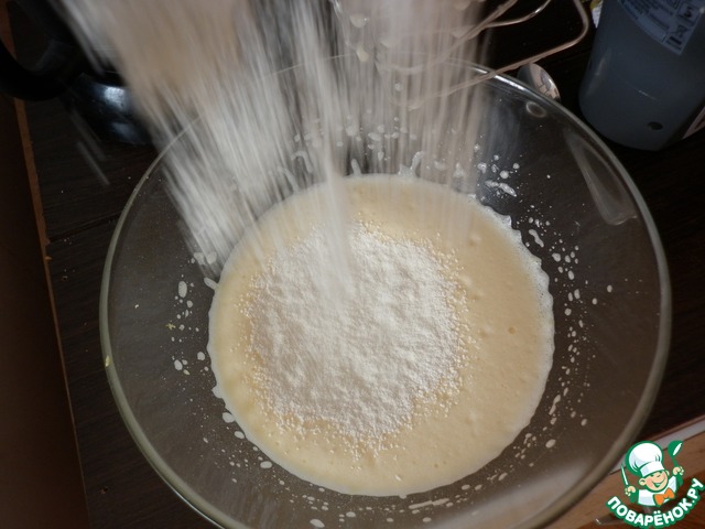 Всыпать просеянную с разрыхлителем муку. Смешать до однородности.