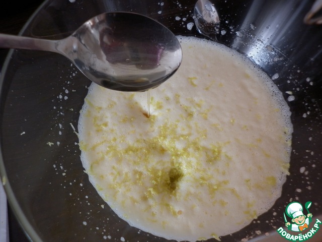 Добавить растительное масло и измельченную цедру половины лимона. Всё тщательно перемешать. -