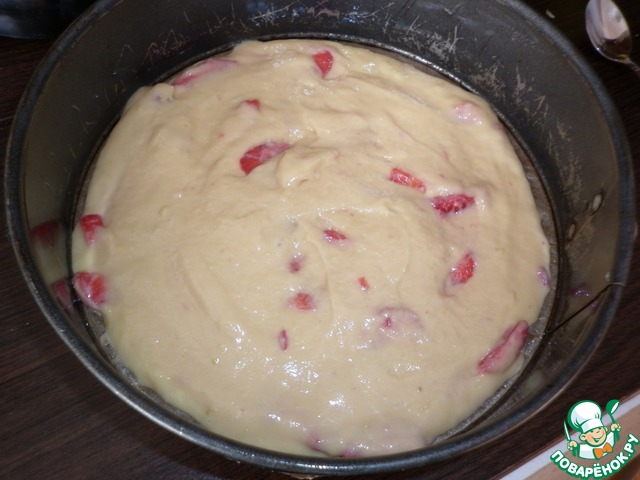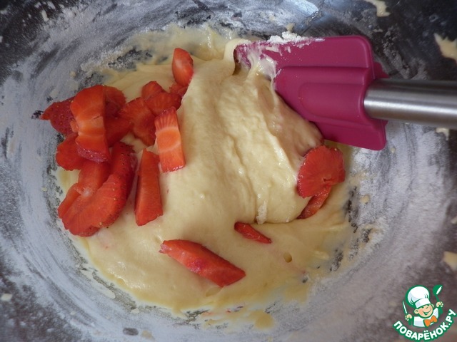 Добавить нарезанную произвольными кусочками клубнику. Перемешать.