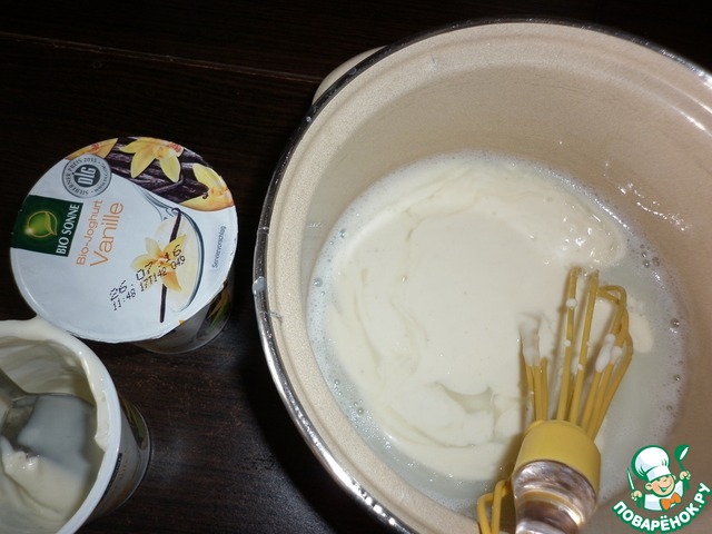 Добавить йогурт, перемешать до однородности.