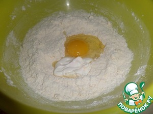 Замешиваем тесто. Убираем на 10 минут в холодильник, пока готовим начинку.
