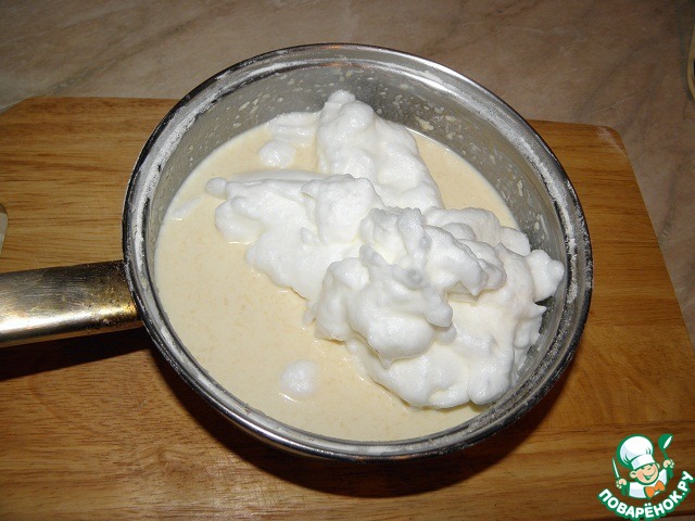 Желтки отделить от белков, (белки пока убрать в холодильник) желтки взбить с молоком