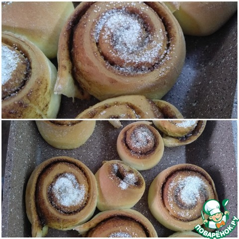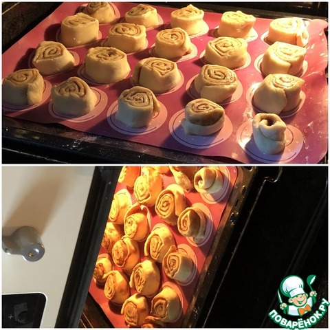 Дать подняться минут 20-30. Затем посыпать сахаром сверху. Они используют специальный "жемчужный" сахар, крупный такой, он не горит, не растворяется и смазывают вначале изделие яйцом. Я не люблю покрывать яйцом и такого сахара не добыть здесь, где я живу, поэтому просто посыпаю обычным сахарком и радуюсь тому, что могу сделать. Главно смело и позитивно)))