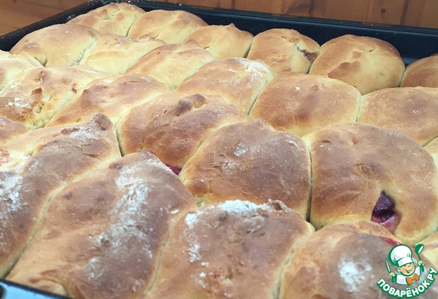 Выложите тесто на стол, притрушенный мукой, и слегка вымесите его. Формируйте пирожки и выкладывайте на обильно смазанный подсолнечным маслом притивень. Оставьте на столе ещё минут на 30, чтобы хорошо подошли. Теперь можно отправлять в разогретую до 180˚C духовку минут на 20 - 30 (ориентируйтесь по румяной корочке)!