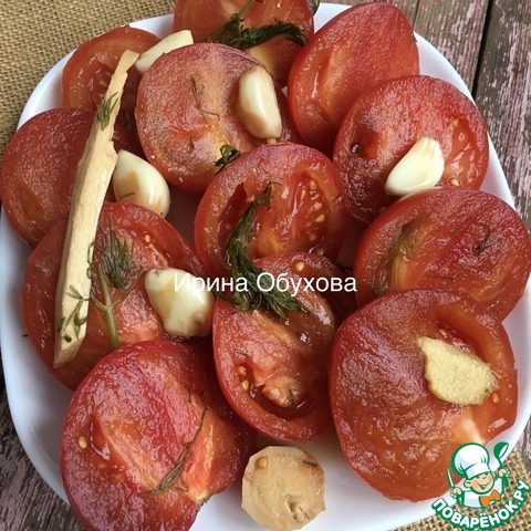 Такие помидоры просаливаются полностью и готовы через трое суток, но я ела их уже на следующий день малосольными. -