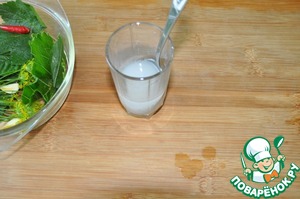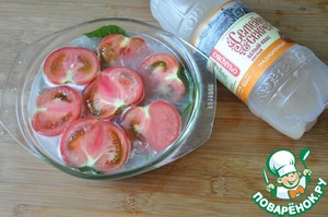 Заливаем помидоры раствором соли и квасом "Семейный секрет" традиционный ТМ "Очаково".