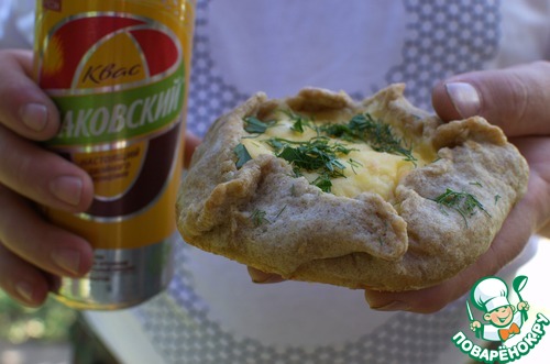 Тесто с добавлением ржаной муки отлично сочетается с начинкой. Сытная, но не "тяжелая"галета особенно хороша теплой-из нее вытекает аппетитный сок. Но и на следующий день она была великолепна, тесто осталось мягким. Запивали эти галеты на даче квасом ТМ "Очаковский"- вкуснятина!