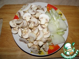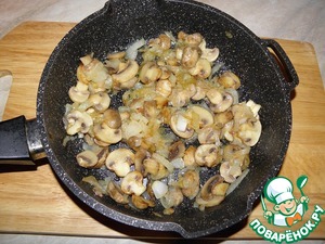В сковородке разогреть небольшое кол-во раст. масла, обжарить грибы с луком