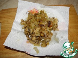 Выложить грибы с луком на салфетку, для удаления лишнего масла