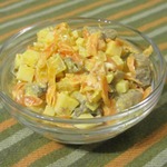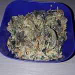 Салат готов. Можно перед подачей на стол посыпать сухариками (мы любим из черного хлеба с чесноком)