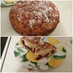 4. В форму присыпанную панировочными сухарями выливаем половину теста, добавляем ягоды и заливаем второй половиной теста.