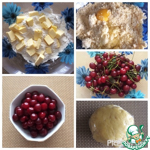 Режем холодное масло на кубики. Смешиваем просеянную муку с сахаром, солью. Руками перетираем смесь в крошку. Вмешиваем яйцо. Собираем тесто в шар. Заворачиваем тесто в пищевую пленку и отправляем в холодильник на 30 минут.