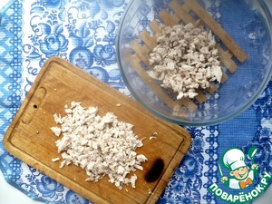 Измельчаем куриную грудку.